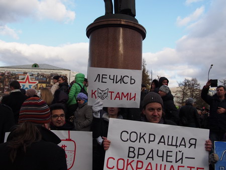 Сегодня кремлевская власть делают всё, чтобы выхолостить суть русского народного праздника 4 ноября, подменяя любовь к отечеству на преданность коррумпированному путинскому режиму, развязавшему информационную и гражданскую войну с братским народом Украины. Мы хотим напомнить людям, что русский патриотизм и лояльность узурпаторам власти в Кремле это не одно и то же. Пять лет Российский Императорский Дом Рюриковичей участвовал в Русских маршах. В этом году мы решили отказаться от поддержки данного мероприятия. Такое решение было вызвано тем, что в Маршах будут участвовать сторонники Новороссии. Мы считаем этих людей славяно-монгольскими фашистами, презирающих ценность человеческой жизни и право граждан на частную собственность, разрушающих города и инфраструктуру братской Украины, разжигающих ненависть и неприязнь между народами. Вместо традиционного Русского марша Великий Князь Валерий Викторович Кубарев Большой Кубенский Рюрикович 2 ноября 2014 года принял участие в митинге врачей и граждан Москвы «Остановить развал медицины Москвы!», состоявшегося в Москве на Суворовской площади с 14-00 до 17-00. В митинге приняли участие более 2000 человек. По данным СМИ на мероприятие пришли около 6000 человек, однако мы полагаем эти цифры завышенными. Собравшиеся на митинг врачи и граждане Москвы приняли резолюцию, которая гневно осуждает планы московского правительства по сокращению на 1/3 количества медицинского персонала и количество больниц в Москве под надуманным предлогом оптимизации структуры здравоохранения. С 1 января 2015 года десятки тысяч медиков могут остаться без работы. Количество больничных коек в Москве будет сокращено на 40 000 мест, хотя Москва это непрерывно растущий мегаполис, где количество жителей и гостей столицы уже превышает 12 миллионов человек. Участники митинга потребовали заморозить реформу здравоохранения в Москве на один год и тщательно разобраться в целесообразности оной. Святая Русь и Российский Императорский Дом Рюриковичей полностью поддерживают требования врачей Москвы, а также выступают против ошибочной реформы медицины, осуществляемой Кремлем по всей стране.